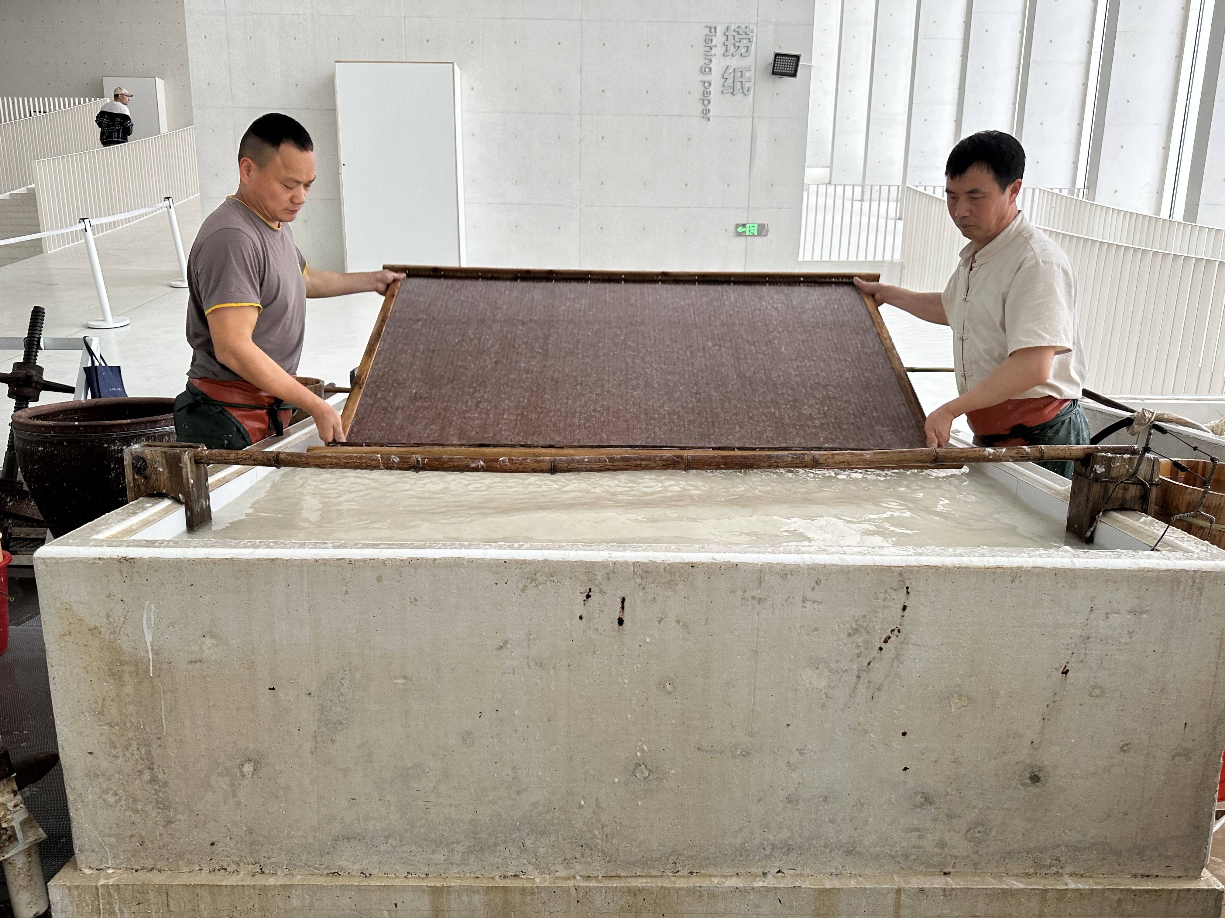 在“三丈三” 巨宣制作车间,游客可以目睹 44 人协作捞纸的壮观场景,感受传统手工技艺的震撼。